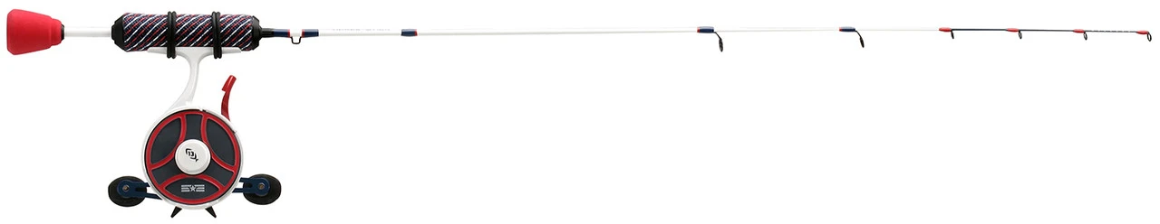 Donned with a brilliant red, white, and blue color scheme, the 13 Fishing Black Betty FreeFall Ghost Patriot Edition Ice Combos will have you well equipped to anything you encounter out on the hard water. Brought to you by the leading innovators in ice fishing, this combo combines the supreme sensitivity of 13 Fishing’s Tickle Stick series rods with their incredibly popular Black Betty Free Fall Ghost Inline Ice Reel. Built with PC2 flat tip blank construction, the Tickle Stick Ice Rod is perfect for working a wide variety of ice fishing jigs and lures with the ideal action. They feature soft and sensitive tips to detect faint bites from small panfish, while retaining the back bone necessary to put the brakes on big walleye, pike, and lakers when the time comes. The Black Betty Free Fall Ghost Inline Ice Reel gives anglers the ultimate control over lure depth, and the ability react to bites instantly on the fall and achieve the perfectly timed hook set. This inline reel is designed for the specifically for ice angers with features like customizable drop speed control, instant anti-reverse, and a high strength composite frame.